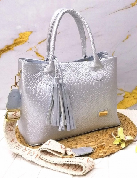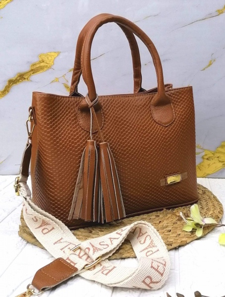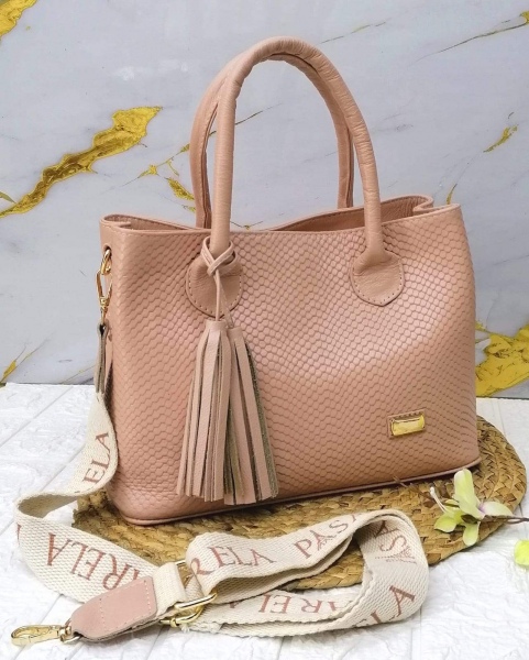 Bolso Oslo muy elegantem comodo y confortable, en material con textura y grabado, agarradera y titanta para el hombro, cierre de cremallera, decoración colgante y herrajes metálicos.